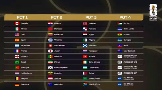 Topf 4: Jordanien, Kap Verde, Ghana, Curaçao, Haiti, Neuseeland, Europa-Qualifikation A, Europa-Qualifikation B, Europa-Qualifikation C, Europa-Qualifikation D, Interkontinental-Qualifikation 1, Interkontinental-Qualifikation 2.